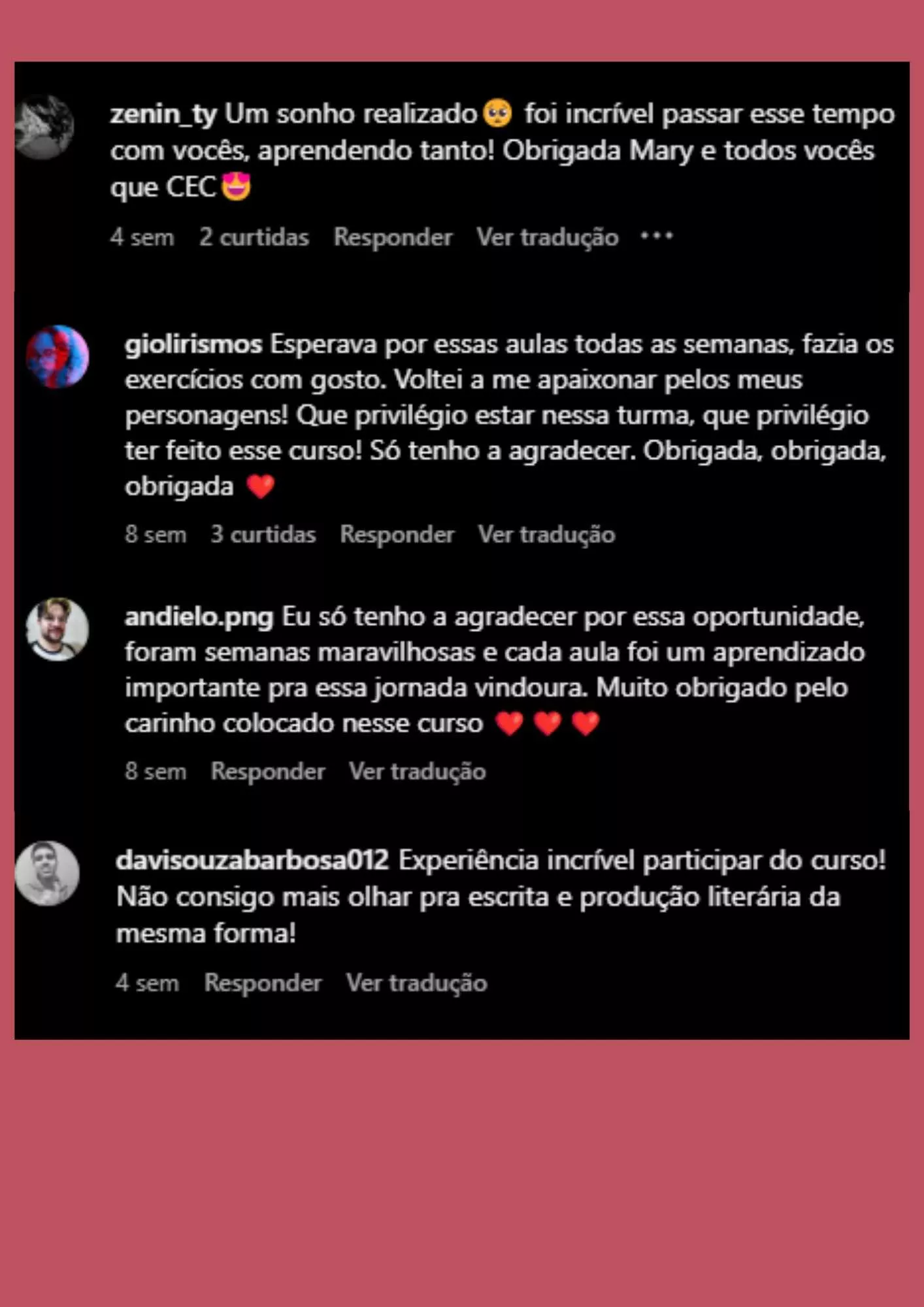 DEPOIMENTOS DE QUEM JÁ É DA NOSSA COMUNIDADE E FEZ NOSSA MENTORIA